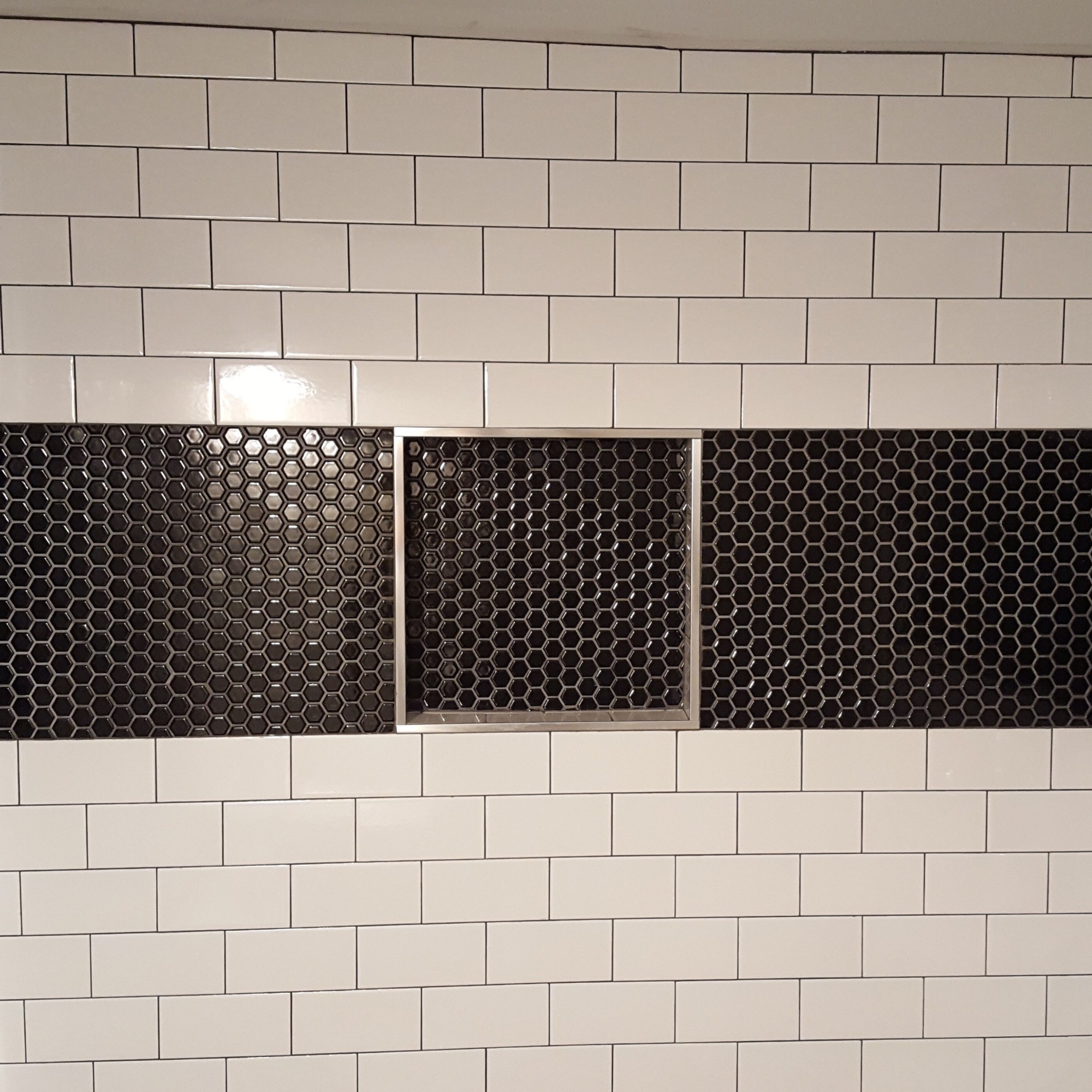 Bathroom Remodel Custom subway and hexagonal shower tiles with new fixtures. February 2017 Tagged Plumbing, Tiling